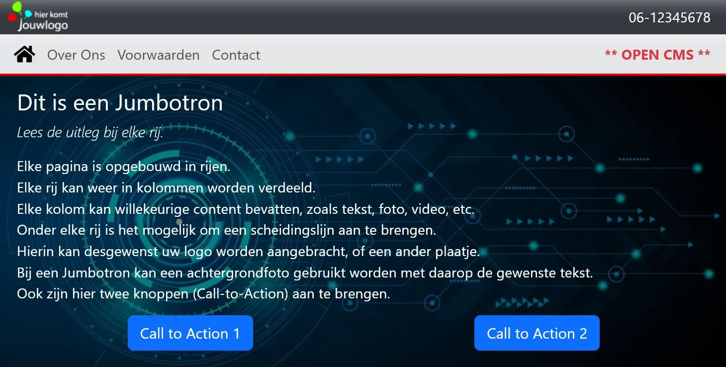 Er staat een complete website klaar waarmee je een maatwerk CMS kunt uitproberen.